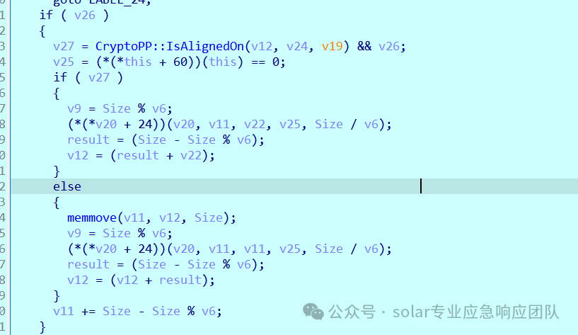 10.加密采用的AES具体实现是sub_750840函数,可以比较清晰的看到数据对齐与加密等操作。