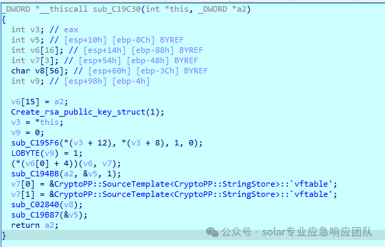 主要通过sub_1F66C0函数来实现了一个对于RandomPool的初始化,相当于AutoSeededRandomPool RNG这句代码;