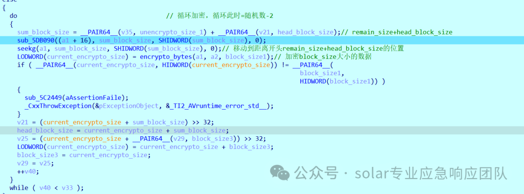 9.得到了循环次数和不加密的数据大小后,就是开始对剩余大小的内容开始循环加密了