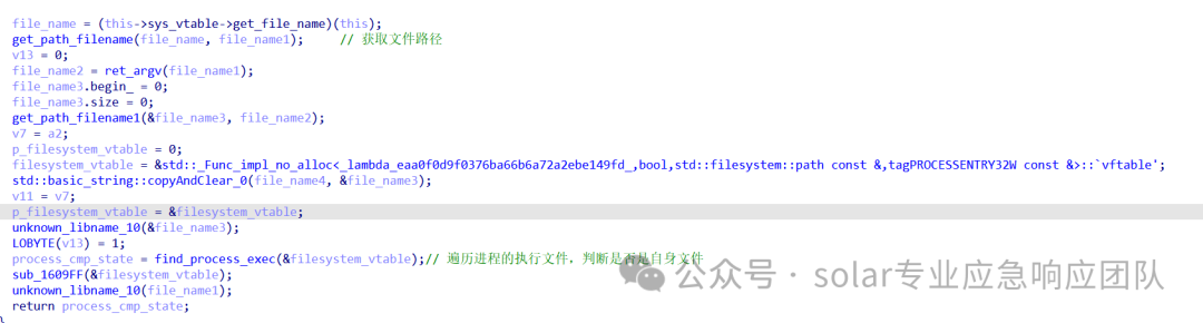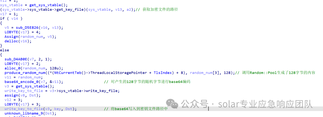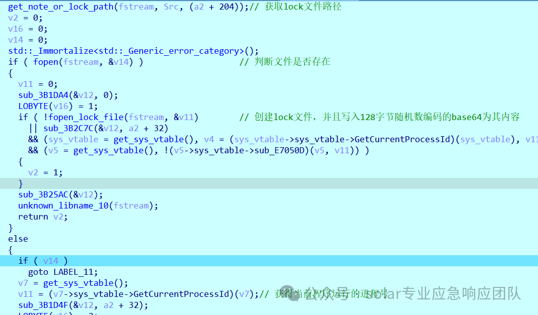 2.进入到sub_AA327E函数可以看到,首先会先获取一下写入的Lock文件的路径,之后就是创建然后写入内容,写入的内容由当前运行的PID+random_128_bytes被base64编码后的值组成。