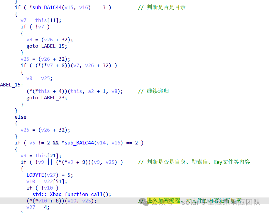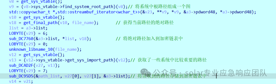 1.在执行完毕上面的创建完勒索信以后,将进入sub_C1604D函数执行一系列的获取路径,结合protobuf对象中的过滤内容来进行过滤等操作。