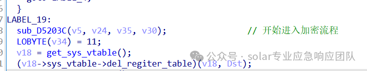 2.进入到sub_A9DBC6函数中,可以看到即将进入写入勒索和LOCK的主要实现函数