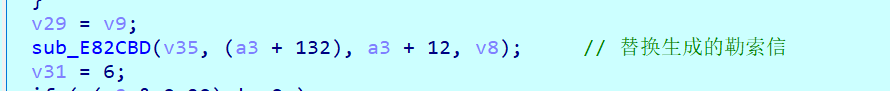 3.得到了勒索信ID的前半部分后将进行勒索信的替换工作了,主要实现函数是sub_E82CBD函数