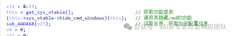 该程序会将所有的功能函数,基本上都在一个类中实现,所以开始时会先获取一下虚表地址,之后再根据其虚表的地址加偏移的方式进行对应功能方法的调用,这时可以恢复一下该虚表的结构,重建一个结构体即可。