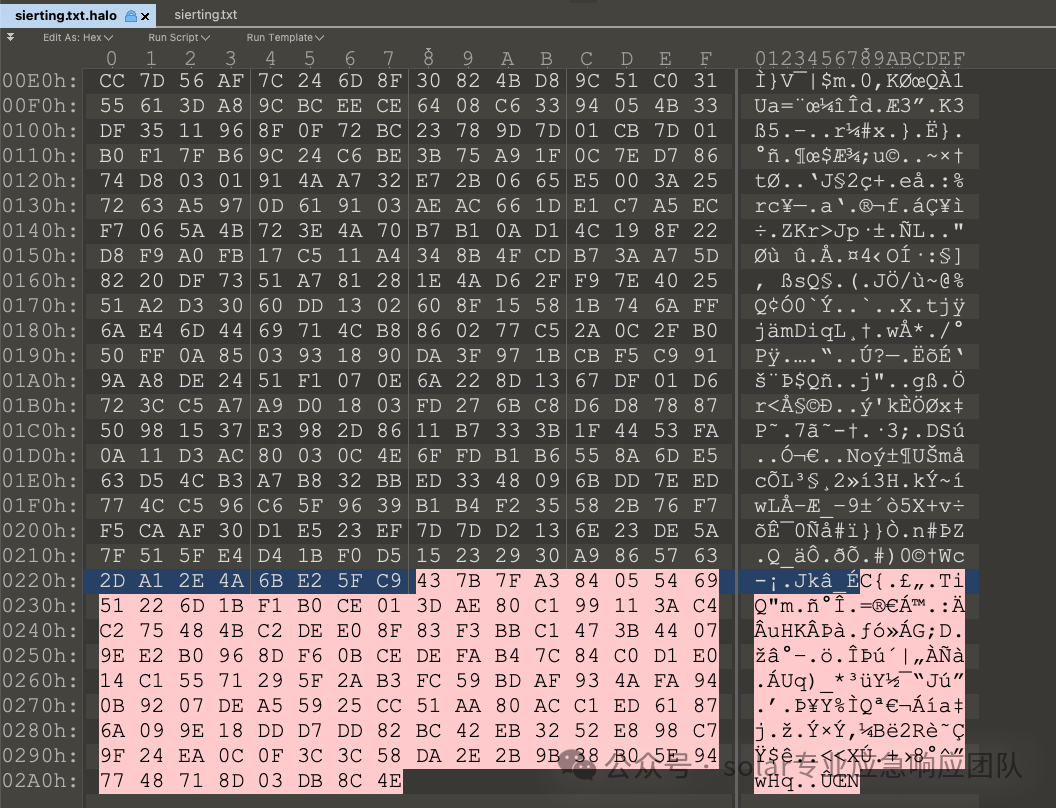 加密文件名 = 原始文件名+加密后缀 ,例如:sierting.txt.halo