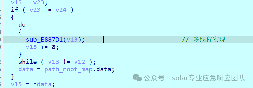 该函数主要实现了对前面存储路径的数据结构中的路径的过滤与启动多线程来实现对文件的加密与勒索信和KEY文件的释放。