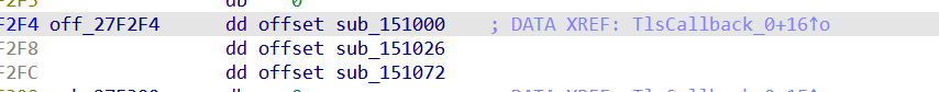 分别为sub_151000、sub_151026和sub_151072三个函数,该TLS回调函数作用就是分别调用这三个函数。