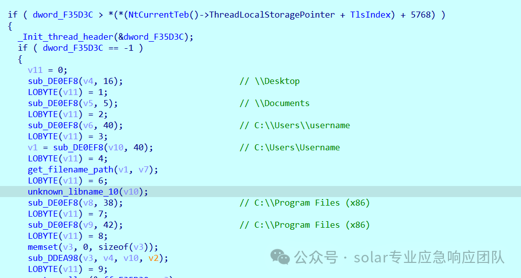 3.具体多线程的所触发的核心内容在sub_C5198C函数中能看到,该函数主要实现了对以上目录的遍历,外加__LOCK__文件和勒索信文件的写入,首先便是先向该遍历目录下写入勒索信!info.txt和___LOCK__文件,具体实现请看下面的写入!_INFO.txt勒索信和写入密钥文件__LOCK__。