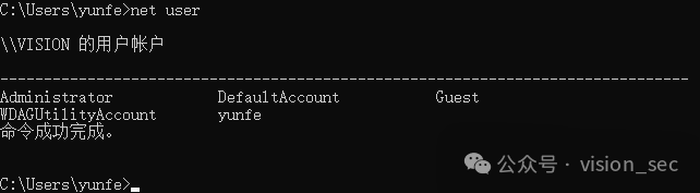 net user //列出本地用户