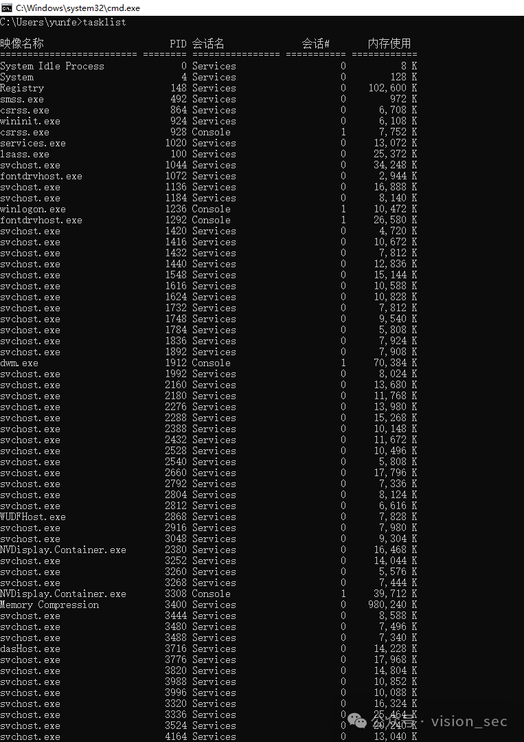tasklist //列出正在运行的进程