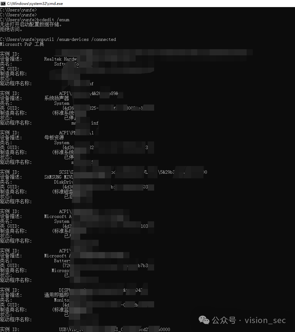 sc queryex type\= driver //列出系统驱动程序及其状态
