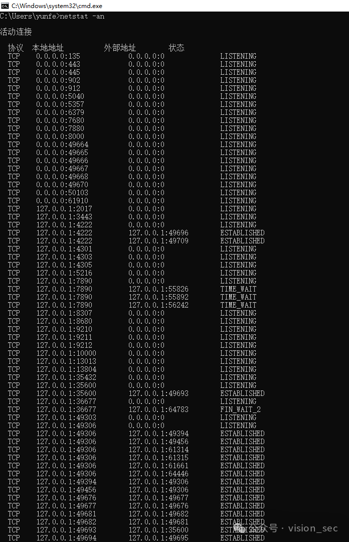netstat \-an //显示活动网络连接