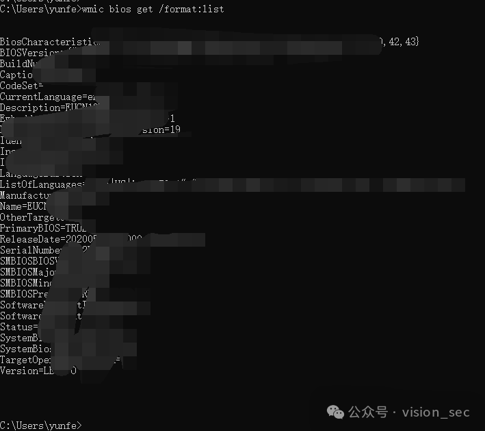 wmic bios get /format:list //获取BIOS信息