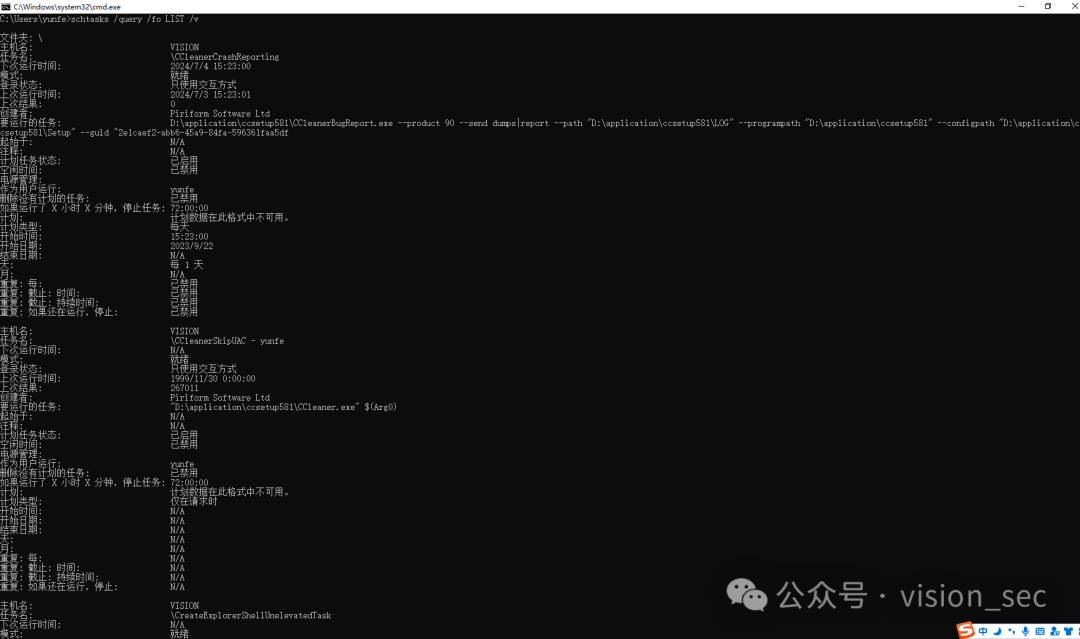 tasklist /v //获取进程详细信息