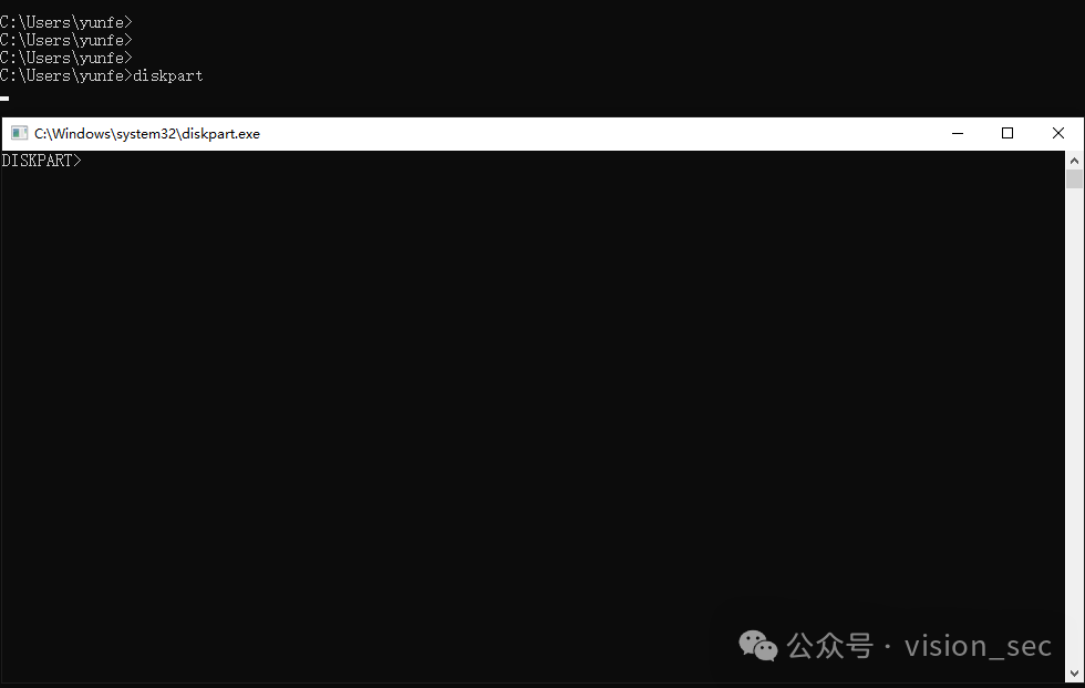 diskpart //打开磁盘分区实用程序