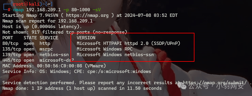 nmap 192.168.209.1 -p 80-1000 -sV