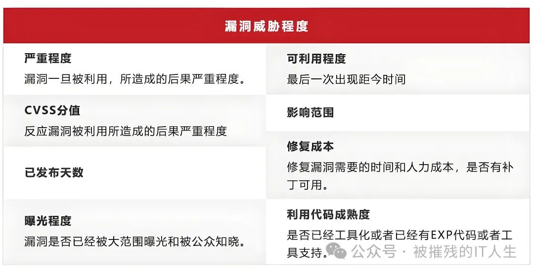 对发现的漏洞进行风险评估,评估漏洞的影响范围和严重程度。一般来说,扫描工具给出的等级(比如“致命”、“严重”等),可以作为参考,但实际上是不是要修复,在何时修复,需要根据漏洞被利用的条件综合评估。比如该系统前面有WAF可拦截,或该服务器只能在内部访问时,风险等级可以适当降低或延后修复。