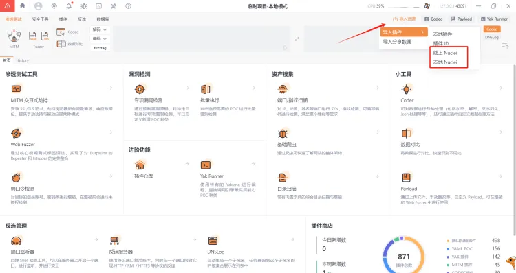 报错显示没有templates,原因在于Yakit调用的PoC都从数据库拿的,而并非从本地的nuclei-template。解决方法也很简单,在Yakit右上角有个导入资源的按钮,可以从这里导入线上或者本地的nuclei资源。