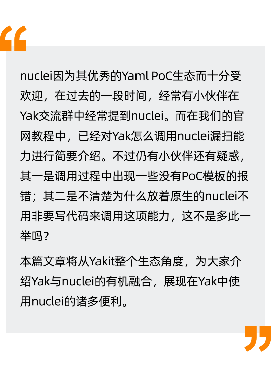 Yak集成nuclei,并非只是将该工具生硬地放了进来,而是在更高层面做了有机的融合,打通了nuclei的生态与Yak的生态的壁垒,体现了Yak安全能力融合的思想。这种融合有许多应用场景,比如渗透测试的复测。在渗透测试过程中,对目标资产测试完成之后,往往需要过段时间再进行第二次测试,也就是复测。可以想到的是,利用Yak的nuclei的操作流程可以帮你更好地进行复测。比方说,在第一次渗透测试出结果的时候,可以使用Web Fuzzer将HTTP数据包转化为Yaml格式的PoC,并通过插件系统,将本次PoC添加成一组,而在下次复测的时候,即可使用批量执行的功能,并在漏洞数据库中查看复测的结果。