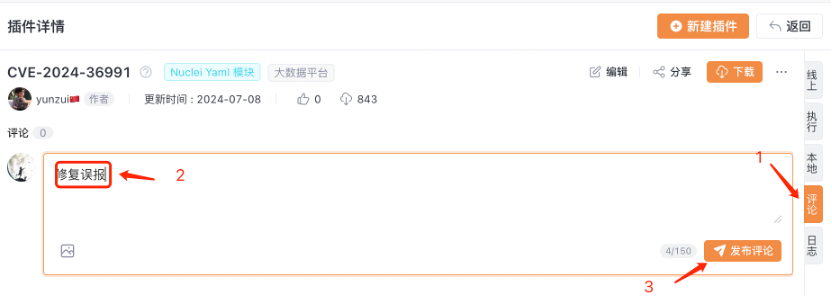请以文字方式在插件评论区备注**"修复误报"**并发布