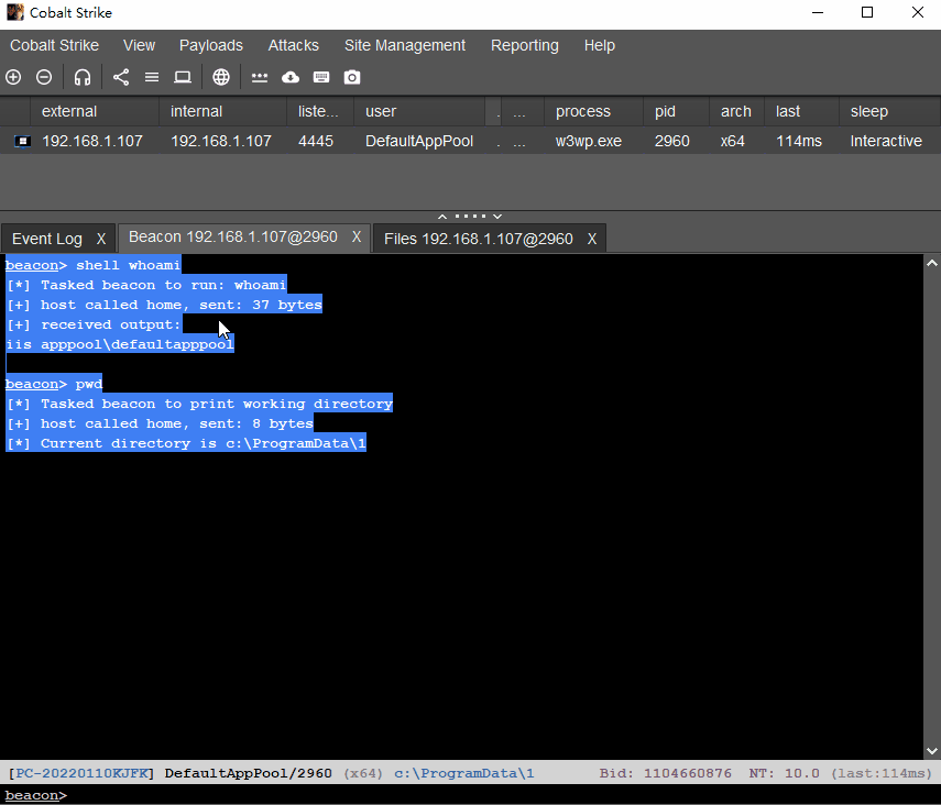 处填入我们免杀木马或其他恶意程序,如果漏洞利用成功即可得到SYSTEM