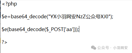 $e=base64_decode("YX小羽网安NzZ公众号XJ0");