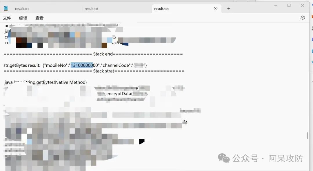 然后进入我们记录结果的result.txt里面直接搜索我们输入的手机号13100000000