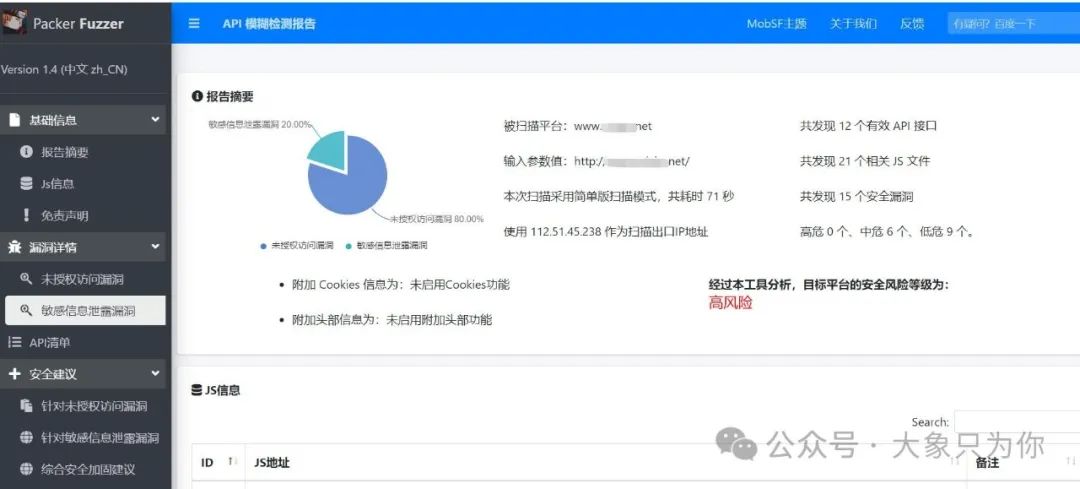 以某个网址做扫描验证,前端是vue实现的,扫描命令是 python3 PackerFuzzer.py -u http://xxx.com