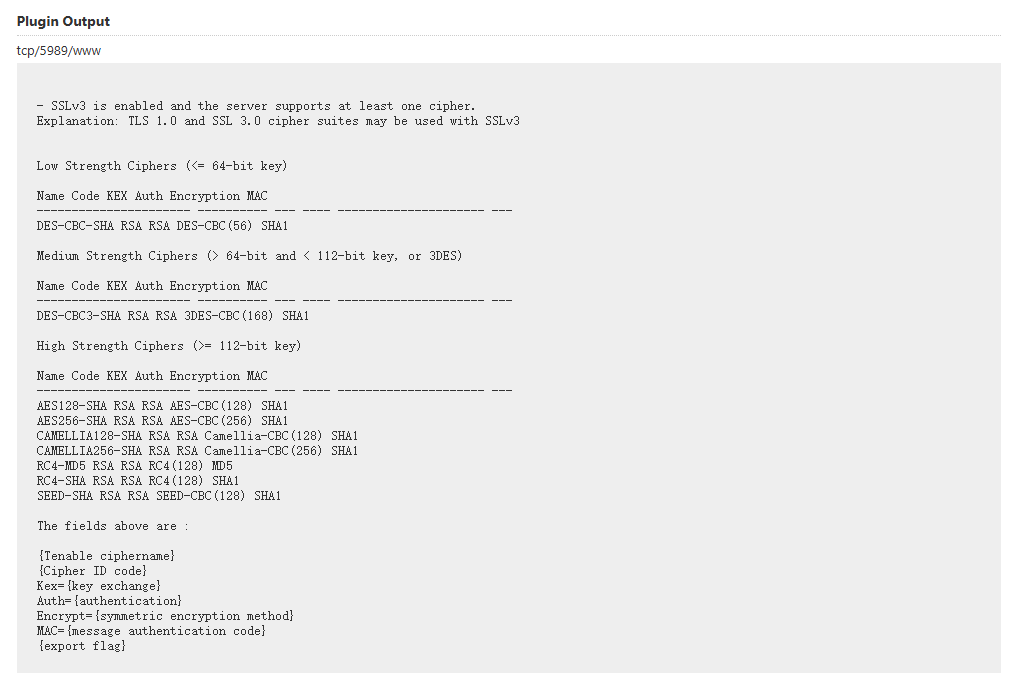 漏洞详情中还会给出漏洞的风险级别和不同版本的CVSS评分,在插件输出部分,会给出检测时返回的信息、端口号和服务,这样的话可以帮助用户快速确定是不是误报。