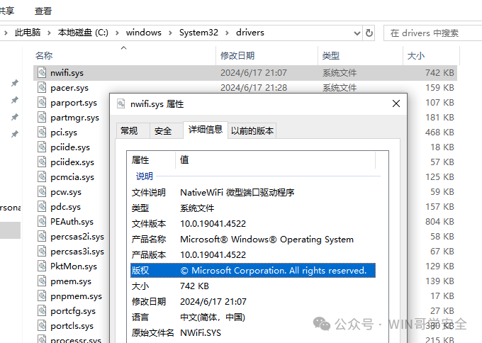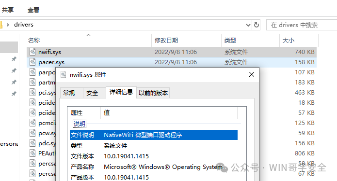 根据某大佬分析,出现问题的文件为:Windows的驱动目录下,nwifi.sys
