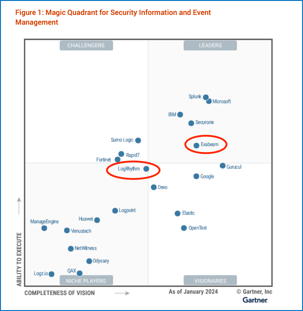 不仅仅是Forrester,在Gartner 2024年5月8日(没错,上周三)新鲜出炉的2024新版**「Magic Quadrant for Security Information and Event Management」报告中,这两家公司的位置也是十分尴尬。很难说这次并购不是受了刺激(****虽然也没有什么证据)**。