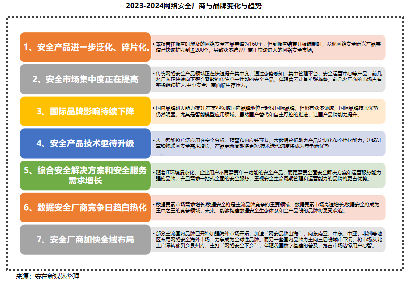 通过对2023中国网络安全市场的调查分析和回顾,报告判断2024-2025年中国网络安全市场可能出现以下的新变化: