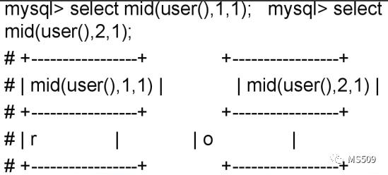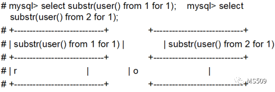 |substr(user() from 1 for 1);|