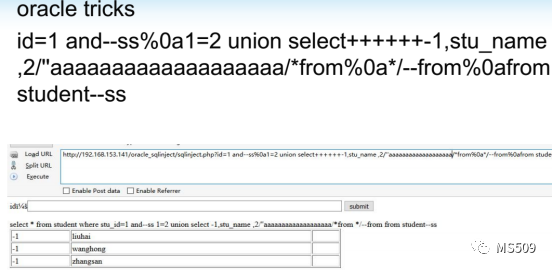 不仅仅mysql有这类的语法特性,mssql、oracle同样支持,这里就不一一介绍大家可以自行fuzz尝试