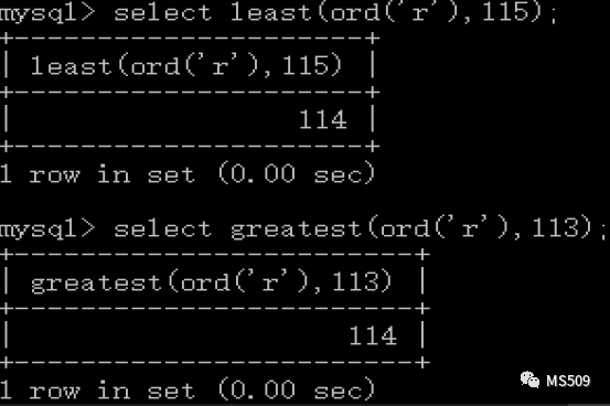 least(ord(‘r’),115)、greatest(ord(‘r’),113)