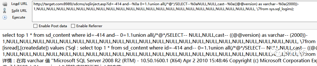 首先在union前面添加我们fuzz的.1字符,不拦截,这就是一个完全绕过payload,百度云加速防护能力相对来说偏弱一些,绕过花费不了太多时间。