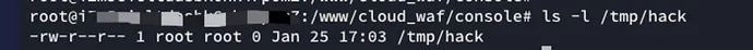至此漏洞利用完成,touch /tmp/hack 仅作为演示,实际可以通过宝塔 WAF 拿到 root 权限,进而控制整个服务器。