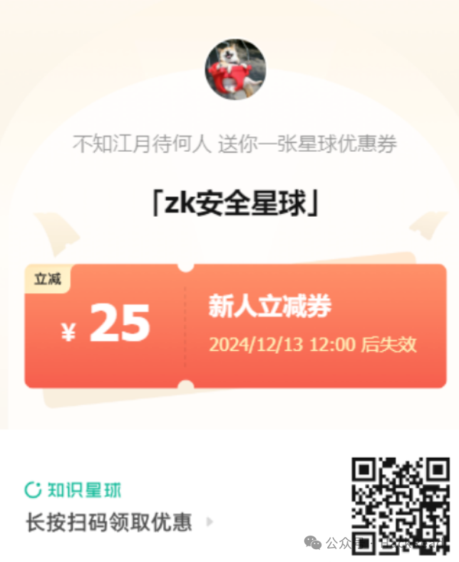 **如果你是一个网络安全爱好者,欢迎加入我的知识星球:zk安全知识星球,我们一起进步一起学习。星球不定期会分享一些前言漏洞,每周安全面试经验、SRC实战纪实等文章分享,微信识别二维码,只需25,即可加入,如不满意,72 小时内可在 App 内无条件自助退款。