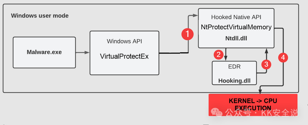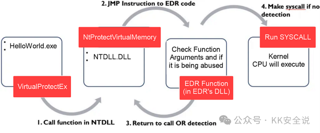 让我们看看 EDR 如何实现 API Hooking,以检测关键 Windows API 中的恶意行为。