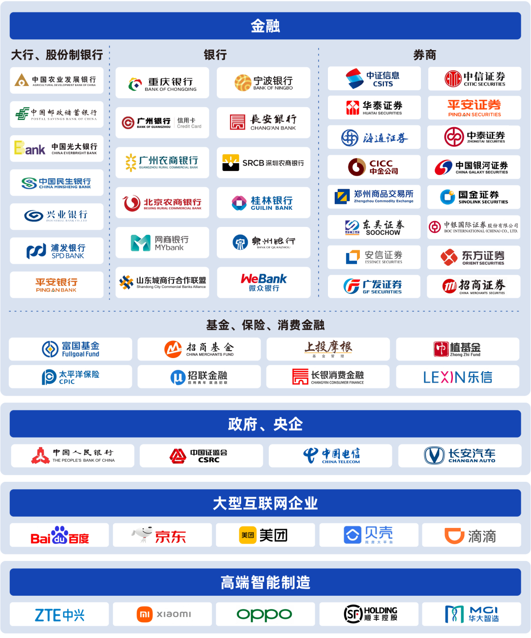 • 大型央企、头部高端制造企业(小米、中兴通讯、顺丰等)、大型互联网公司(百度、美团、京东、贝壳找房、OPPO、唯品会等)、顺丰集团、科大讯飞等。