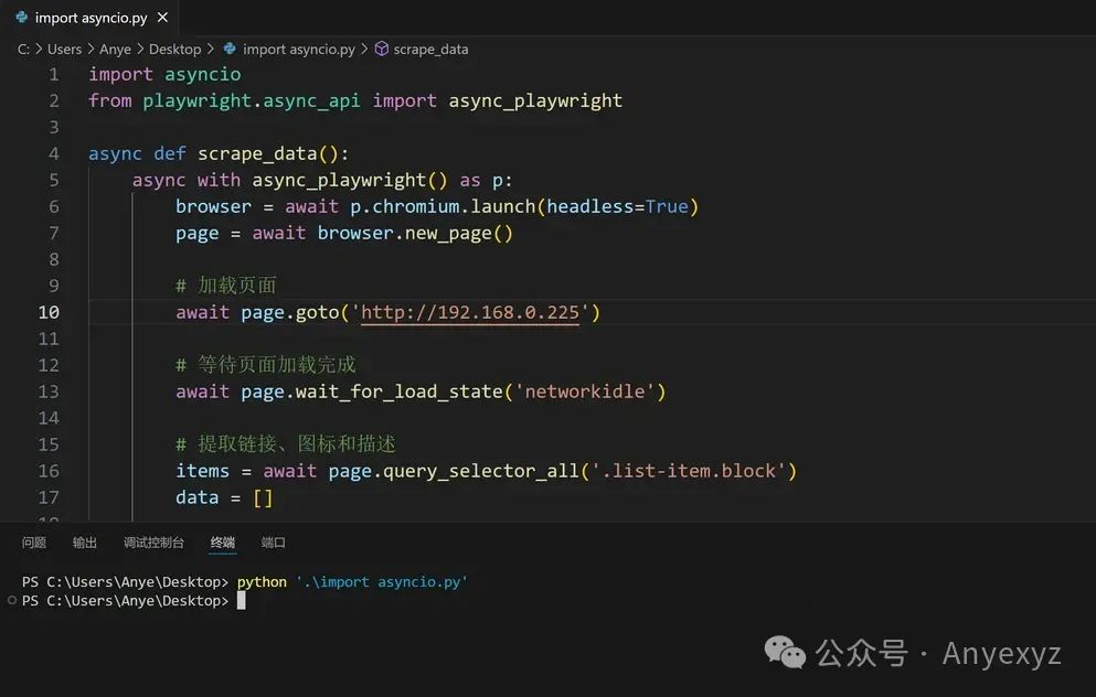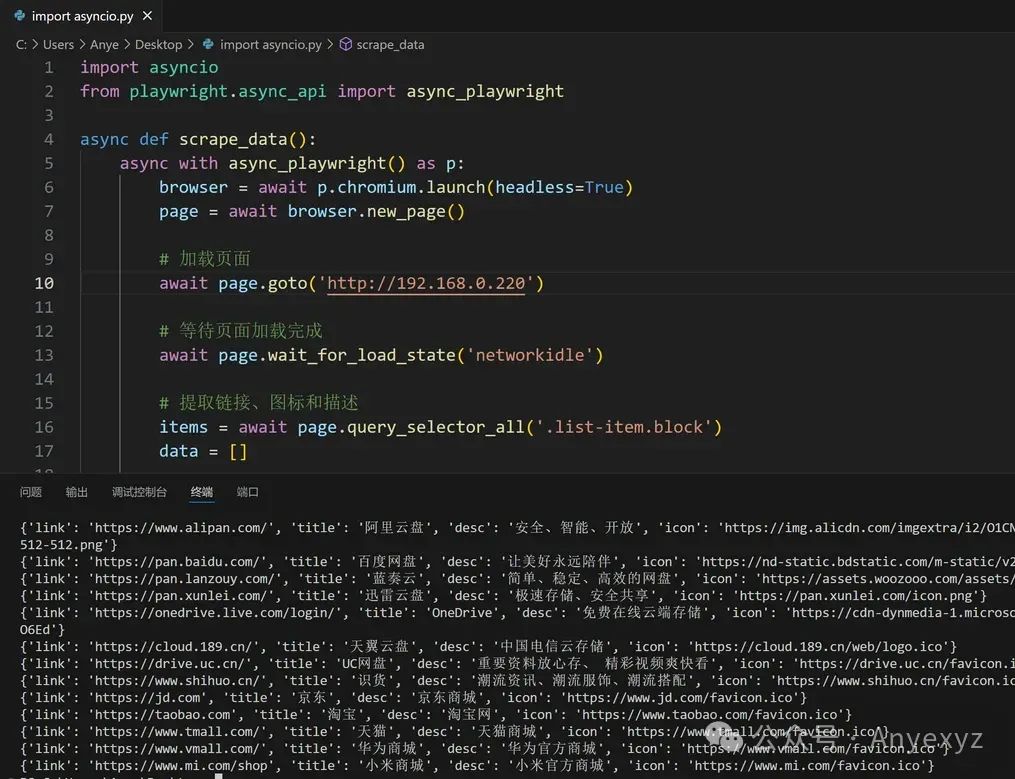 比如爬取 本站导航站,这里使用 Microsoft 的 playwright 库