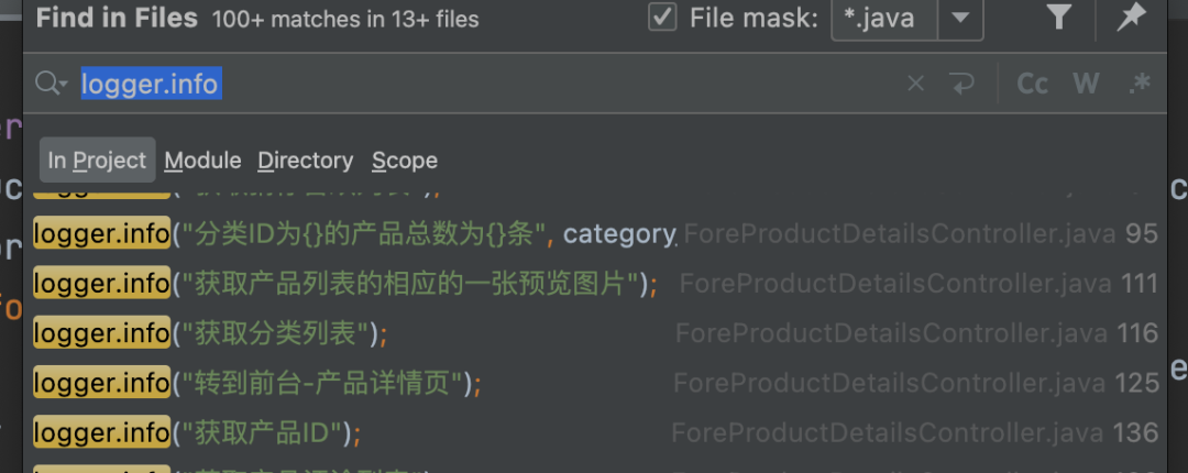 搜索关键字info、error、logger等,找变量拼接: