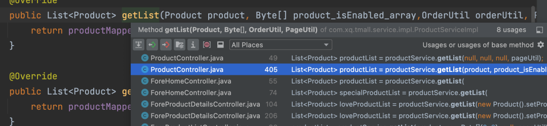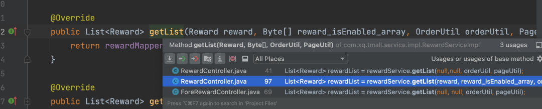 上面图片中,88为变量所在行数,向上寻找select参数,发现是在55行,点击箭头,即可跳转到对应的接口类。
