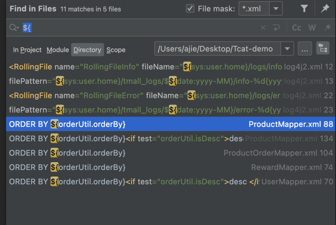 因为用了mybatis框架,所以先搜索看看有没有使用不安全的符号进行传参: