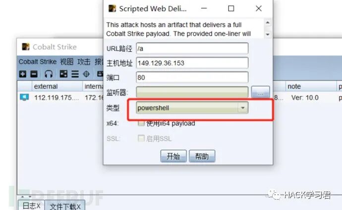 自己搭建一个Cobalt Strike运行客户端后选powershell脚本。