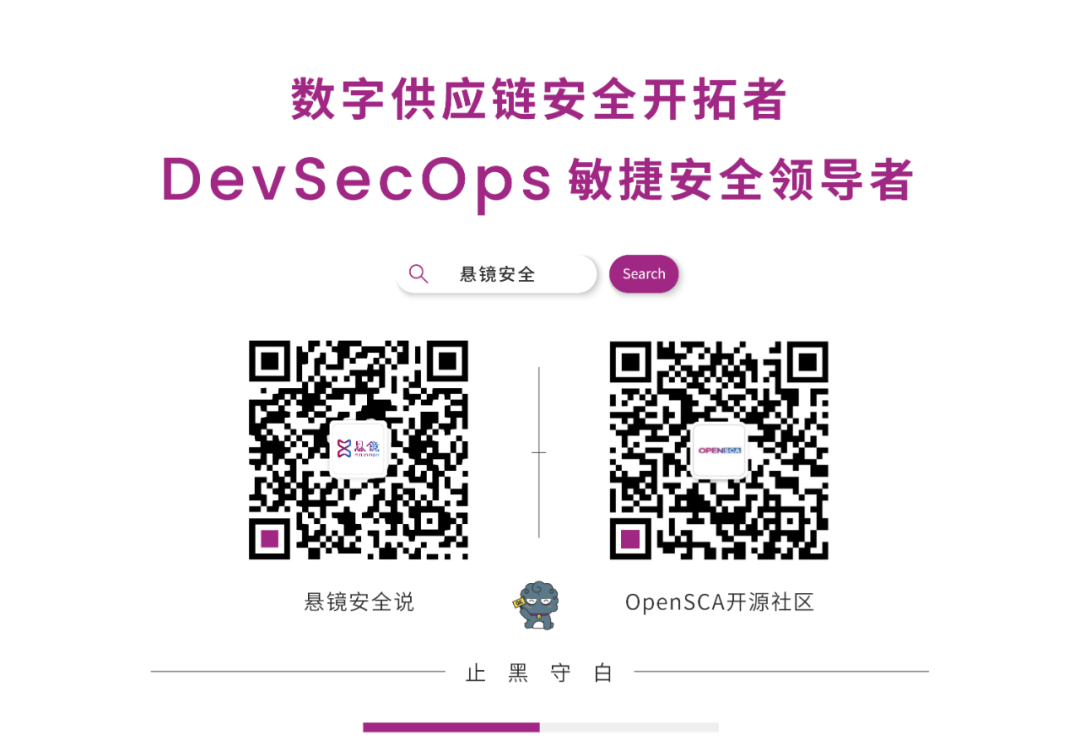 作为DevSecOps敏捷安全领导者和新一代数字供应链安全开创者,悬镜安全在全球范围内原创专利级“全流程数字供应链安全赋能平台+敏捷安全工具链+供应链安全情报预警服务”的第三代DevSecOps数字供应链安全管理体系,将源鉴SCA、灵脉IAST、灵脉SAST、云鲨RASP等敏捷安全技术工具进行深度联动,在DevSecOps敏捷安全体系建设、数字供应链安全审查、开源供应链安全治理和云原生安全体系建设四大典型应用场景下,创新赋能金融、车联网、能源、通信、政企、智能制造和泛互联网等数千家行业用户,为用户构筑适应自身业务弹性发展、面向敏捷业务交付并引领未来架构演进的内生积极防御体系。